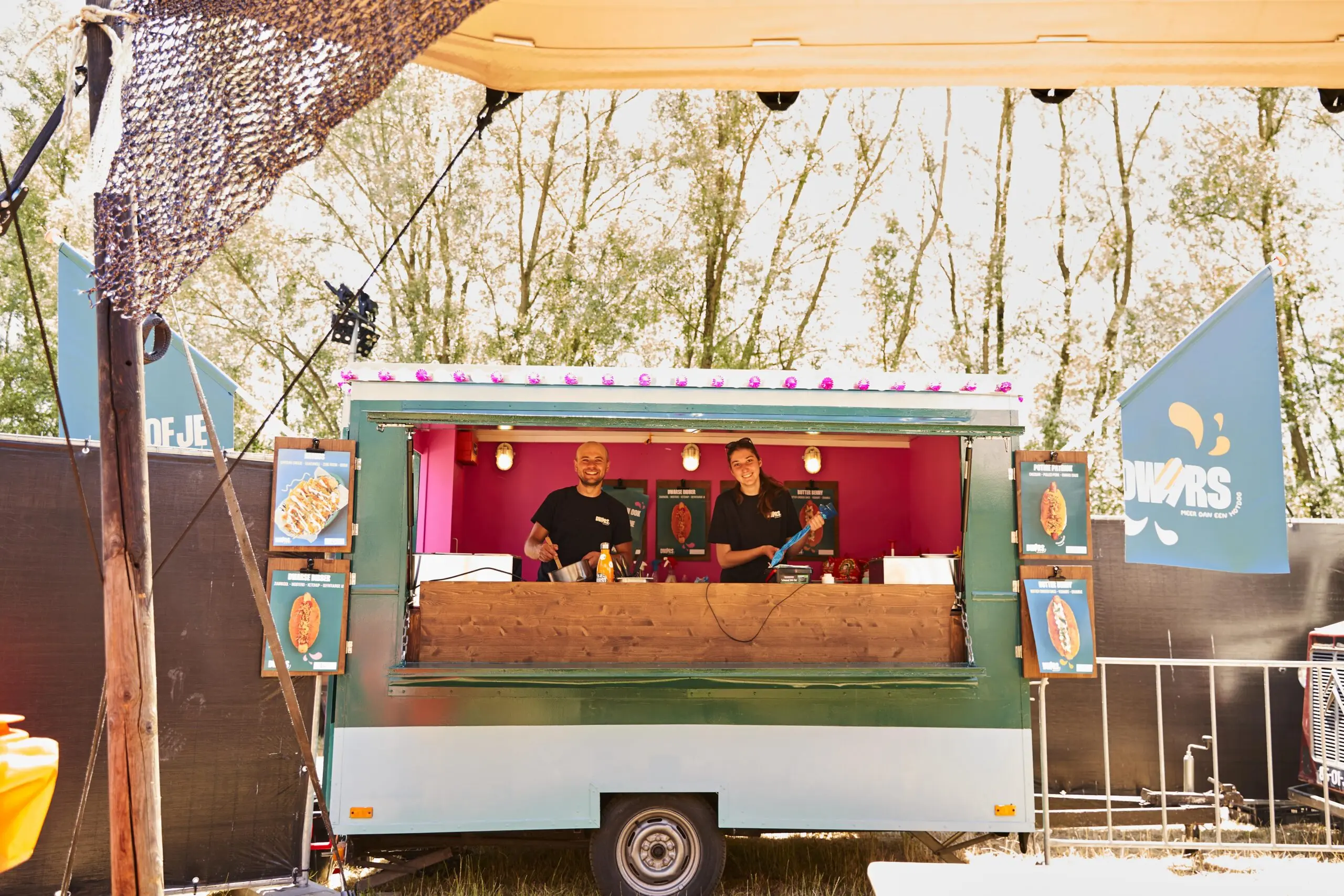 Dwars Hotdogkar uit Tilburg serveert hotdogs van de slager met eigenzinnige combinaties waar altijd voor iedereen wat wils is! Of je nu een echte vlees- of vegaliefhebber bent, zij hebben het allemaal.
