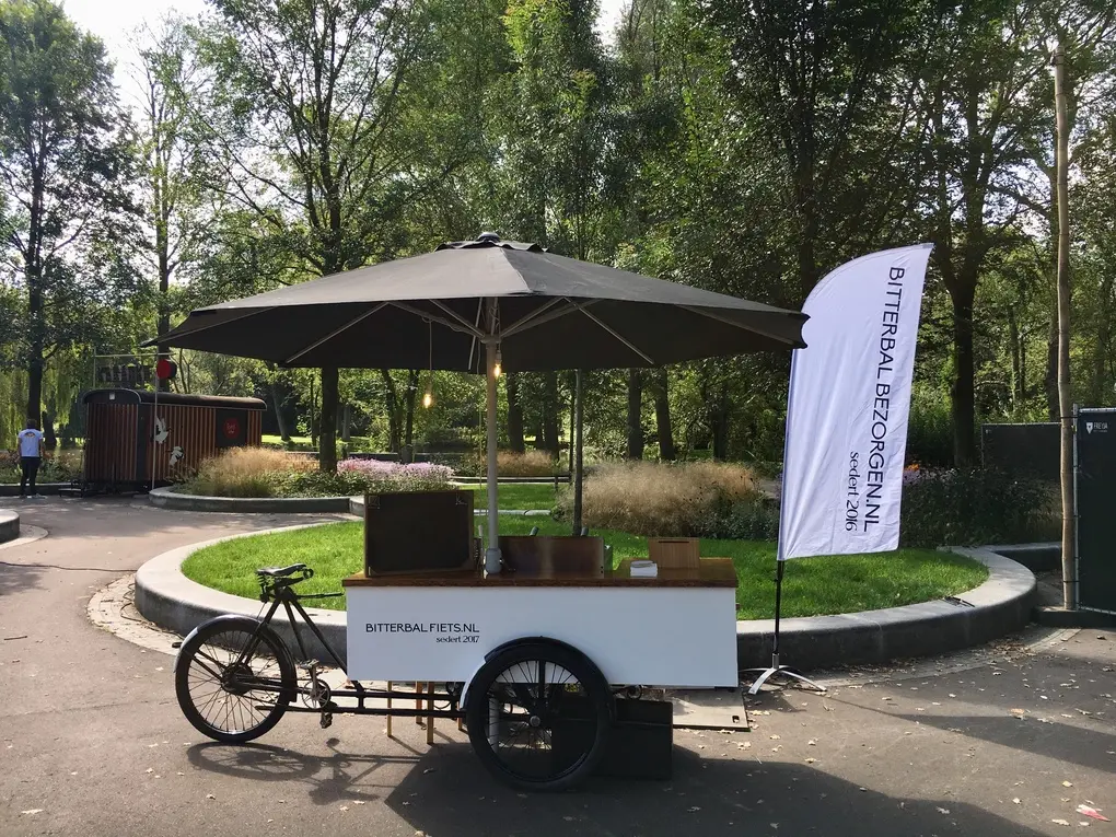 Een bakfiets met bitterballen, er is geen betere manier om de vrijdagmiddagborrel te vieren. De Bitterbal Fiets biedt de beste biologische bitterballen op elke locatie. Wat deze fiets uniek maakt is de authenticiteit van de bakfiets zelf. Deze zeldzame bakfietsen hebben een rijke geschiedenis die teruggaat naar de jaren '30. Tegenwoordig is de Bitterbal Fiets een van de weinige die nog bestaat.