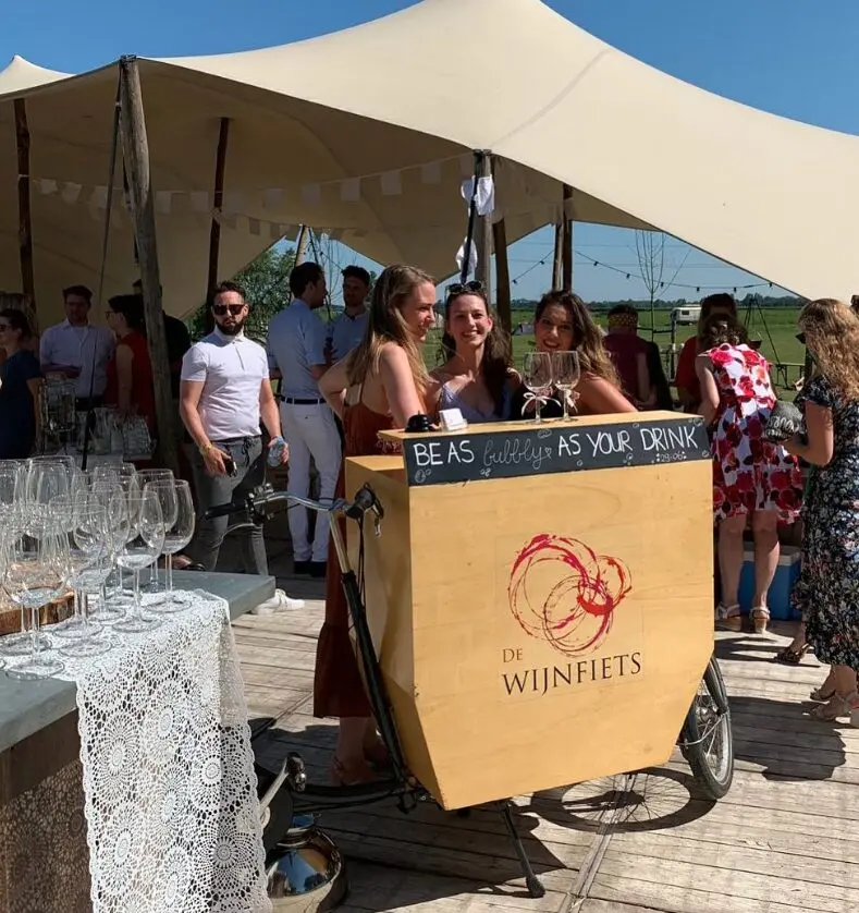 Een mobiele wijnbar die door elke voordeur past en biologische wijnen op de juiste temperatuur serveert, dat is De Wijnfiets. Met twee professionele klimaatkasten wordt elke fles perfect bewaard, ongeacht het weer buiten. De wijnselectie is Europees georiënteerd en bestaat uit biologische wijnen die rechtstreeks van de wijnboer worden ingekocht. Van lichte, fruitige witte wijnen tot volle rode wijnen, en natuurlijk rosé en mousserende wijnen voor elk moment.
