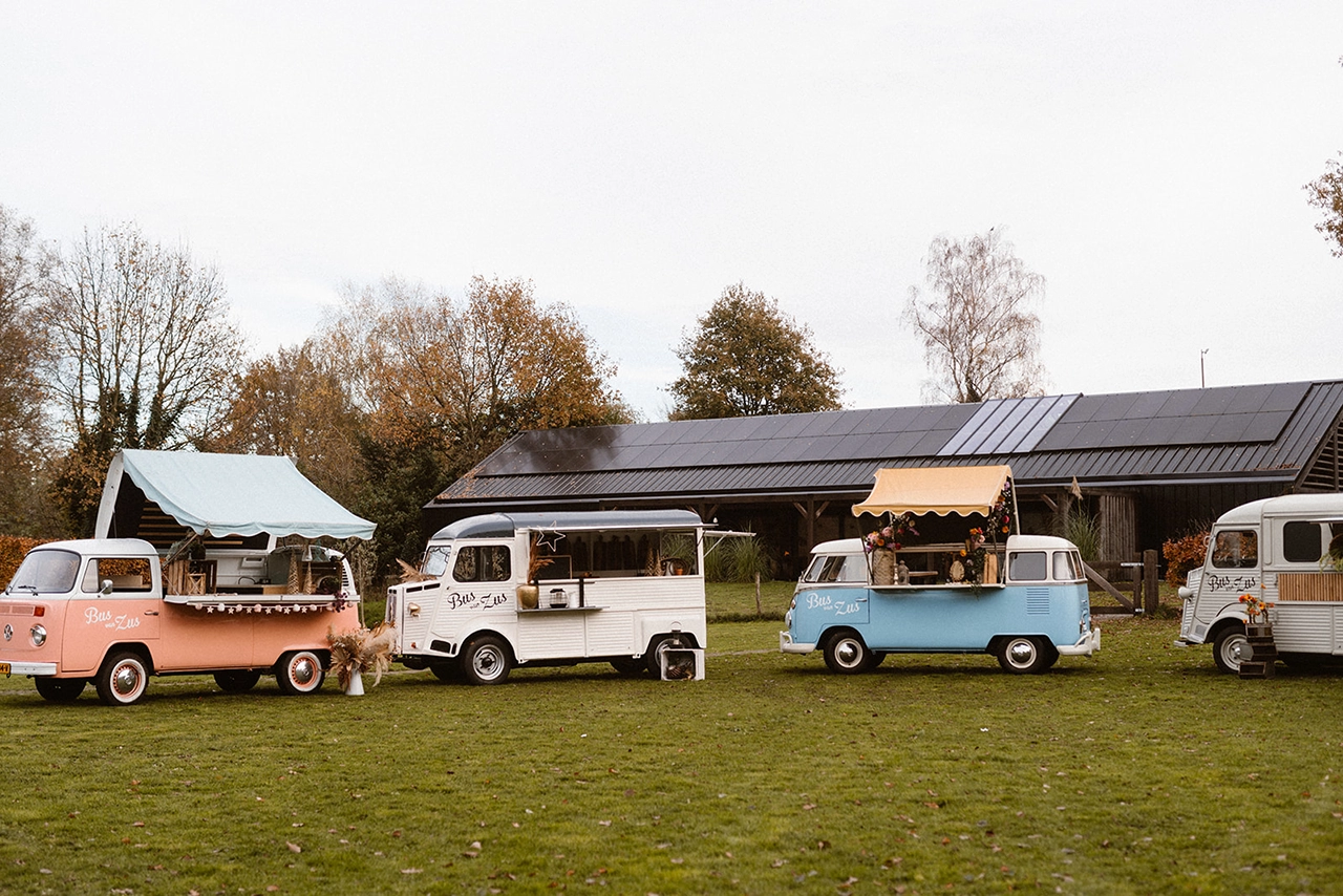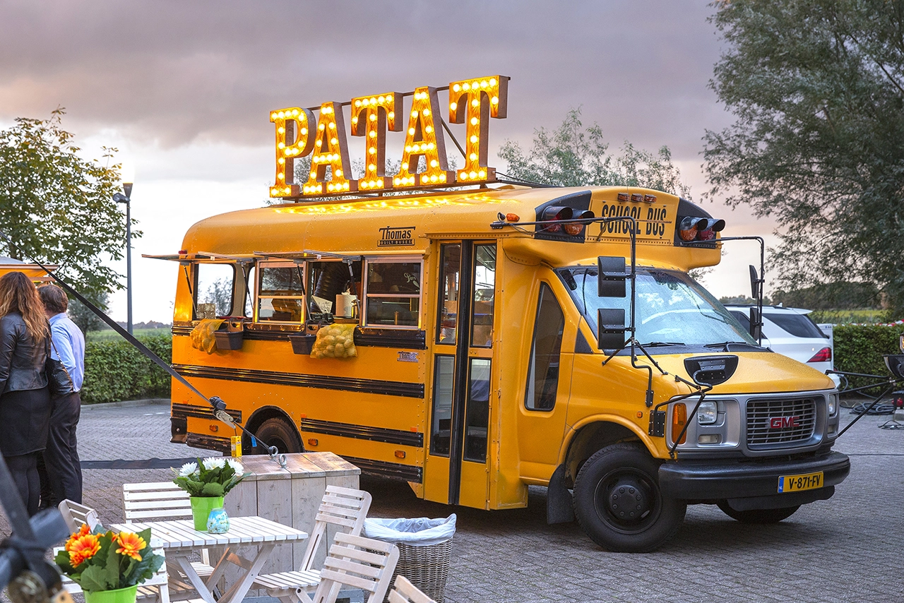 De foodtrucks, waaronder twee unieke schoolbussen, zijn een eyecatcher op elk evenement.